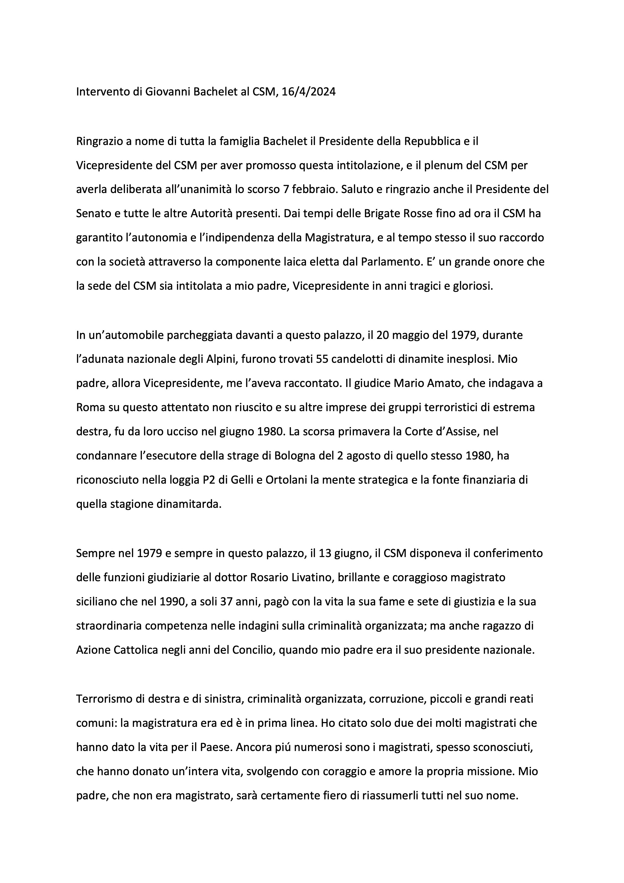 16/04/2024 intervento di GB all'intitolazione della sede del CSM a Vittorio Bachelet (video)